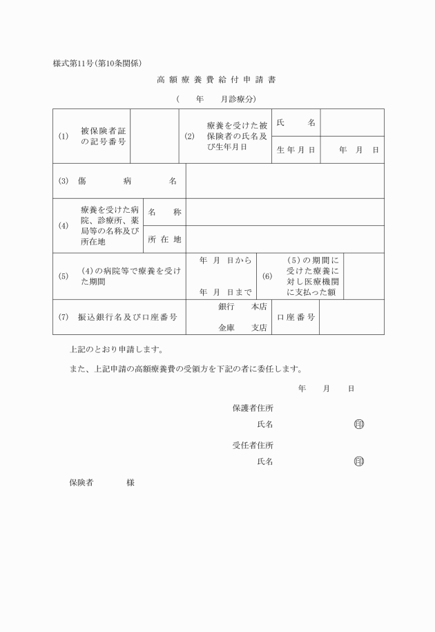 2 前項の高額療養費給付申請書を提出させるに当たっては、保護者から町長に対して高額療養費を受領する権限について委任させるものとする。